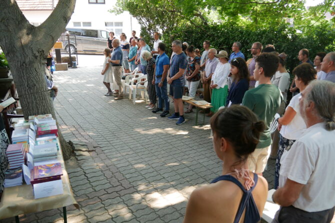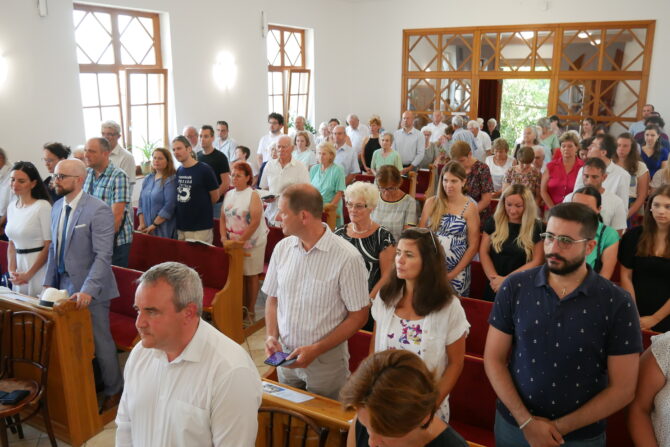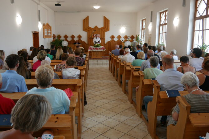 A tízórai harangszóra elkezdtek gyülekezni a hívek. Rég látott ismerősök köszöntötték egymást, balatonfűzfői és balatonalmádi nyaralók és a helyi gyülekezet tagjai. Egy közösség Jézus Krisztusban.