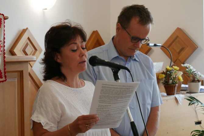 A kezdő könyörgést Gál Zoltán és Welther Ágnes házaspár imádkozták, akik, noha életvitelszerűen nem itt élnek, de teljesen ehhez a gyülekezethez tartoznak, szívvel, lélekkel, hittel, adakozó bőkezűséggel.