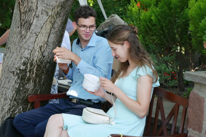 Igét olvastak Roth Manuel és Pabeschitz Virág. Manuel nyaranta itt nőtt fel, ebben a gyülekezetben, húgával együtt. Édesapja is rendszeres nyaraló gyülekezeti tagunk. Virággal pár éve kérték Isten áldását házassági szövetségükre, már együtt tekintik lelki otthonuknak a mi gyülekezetünket is.
