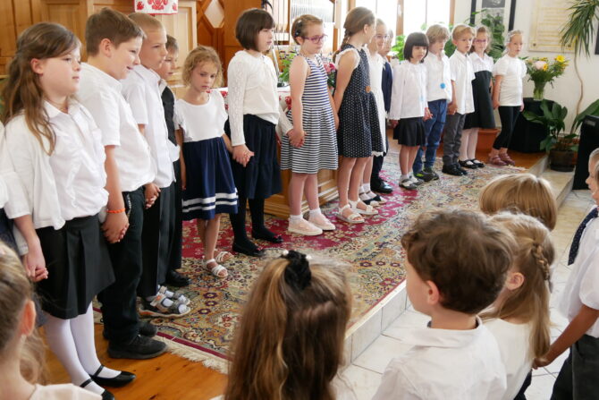 A „nagyok” Nádasné Varga Katalin vezetésével énekes műsort adtak, majd a kisebbek búcsúztak ballagó társaiktól.