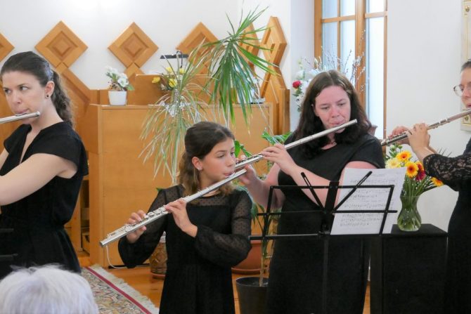 „Ez az a nap, amelyet az Úr elrendelt, vigadozzunk és örüljünk ezen!” (Zsolt. 118,24) Marosné Kovács Tünde elmondta, hogy ezt az igét választották koncertjükhöz. Ő is szólt arról, hogy a Bibliában is szerepel a fuvola mint Istent dicsérő hangszer, és ők is az Ő dicséretére játszanak most.