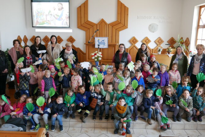 Március 31-én délelőtt a Nádas Református Óvodánk apróságai a húsvétra készülve látogattak el a templomba. Előtte már izgatottan készültek erre az alkalomra, az óvónénikkel közösen papírból pálmaágakat készítettek.